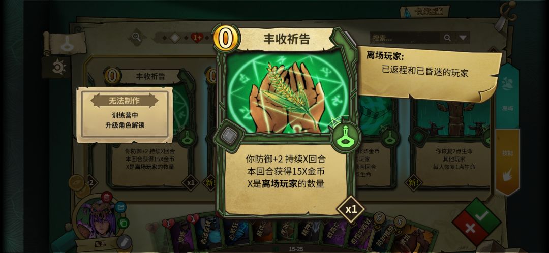 需要注意的是丰收祈告带一张即可,这张牌大部分时间是用不到的,基本上是在快到圣地的时候才有机会用。