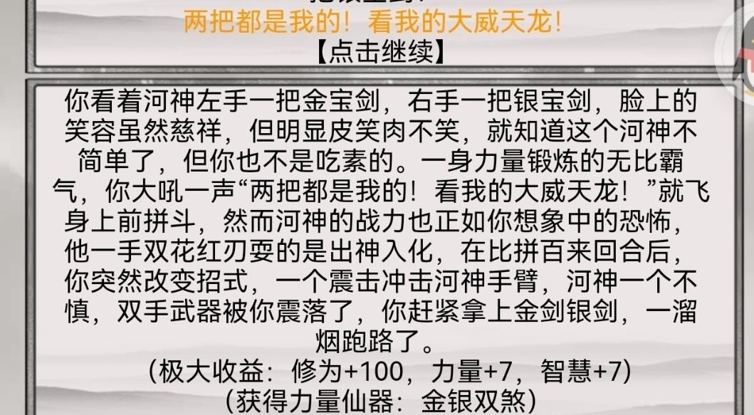(玩的越久越发现忽略很多细节,我才反应过来双剑+7力智,从收益是啥主啥看,需要的是力智 ,最低20+(亲测),概率死亡,小概率成功,达到30+其中一项,大概率成功,且属性越高,其他要求会降低)