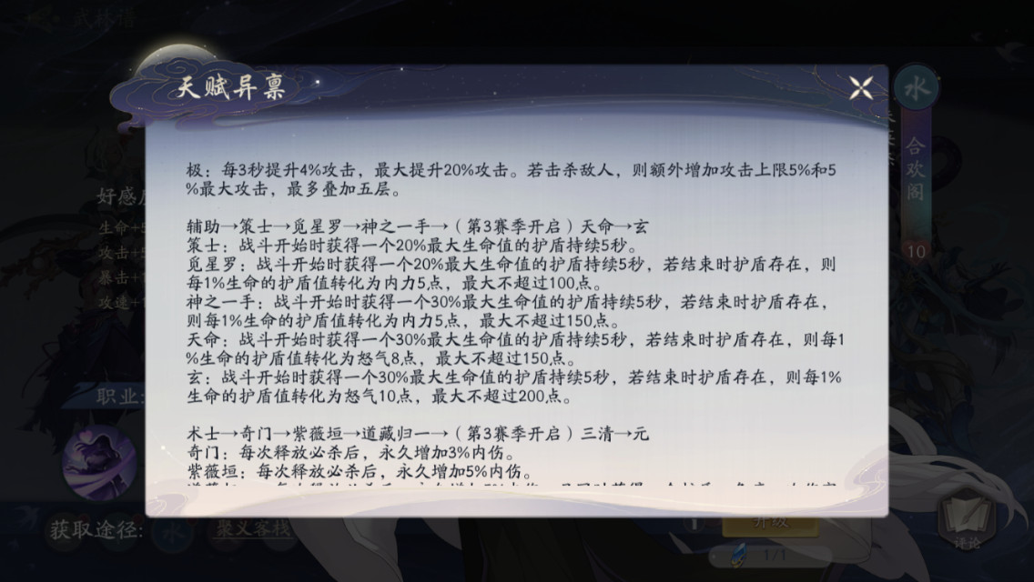 4.彩八(大侠彩五后职业开启达到三级俗称彩八)提升该职业阵容所有大侠1%的属性。