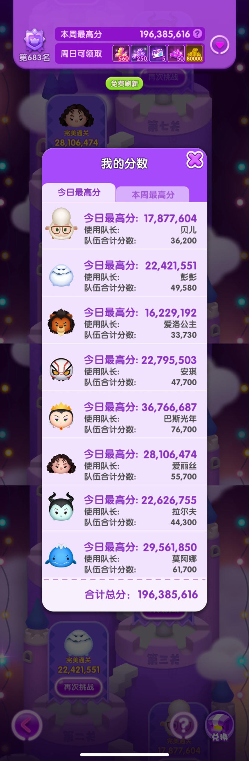三日份的SSR碎片:爱丽丝x3、朱迪x1、辛巴x1、野兽x2、云妮x1、大白x1、白雪x1、木兰x3、爱丽儿x2、拉雅x1