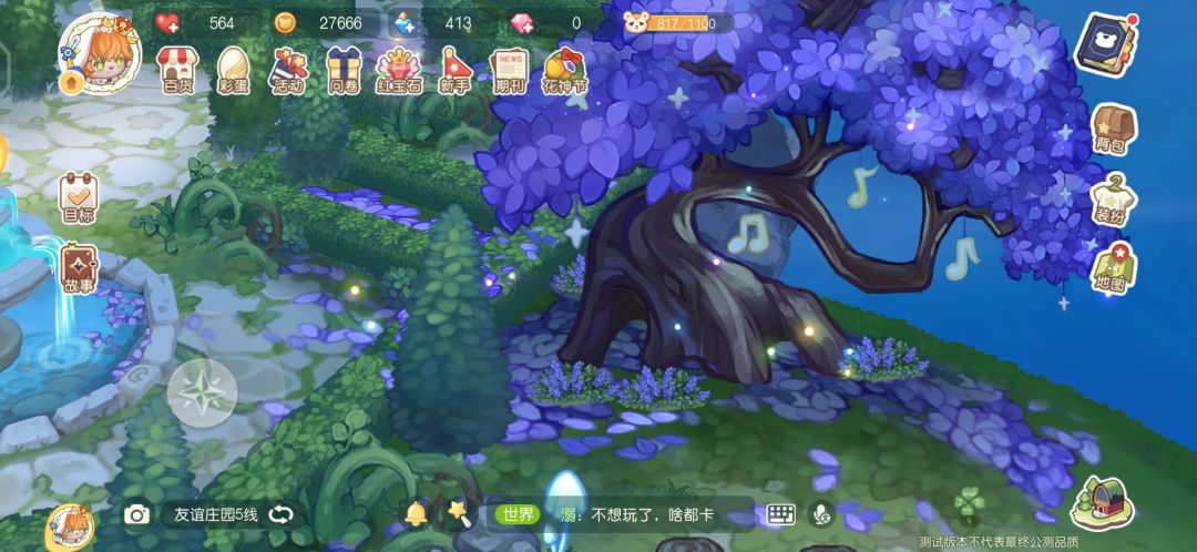 每天记得给亲友送祝福(喷泉下方的蘑菇群)噢!这个也可以获得10点亲和力