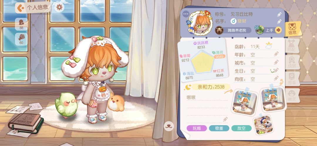 提升亲密度的同时,我们还会增加亲和力(奥比个人信息🉑看)