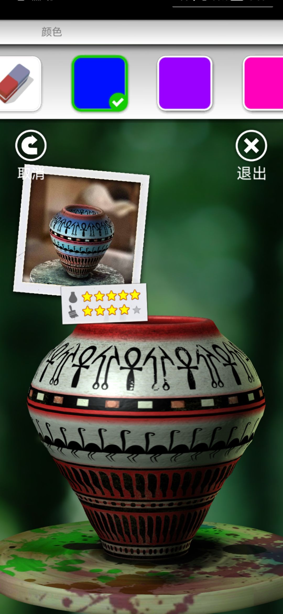 然后刷方块间隔和另一个图案,已经三星了上色,先上所有红色,给一用基础色(金币买的)里两个蓝色做渐变,可以用点涂,比如说最上层深蓝点四下,下一层点三下再下一层点两下,浅蓝色从最底层点四下反过来,这样过渡自然一点