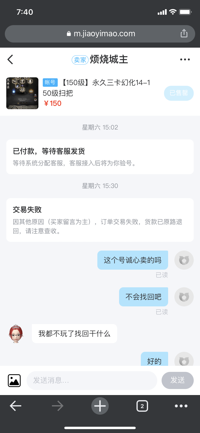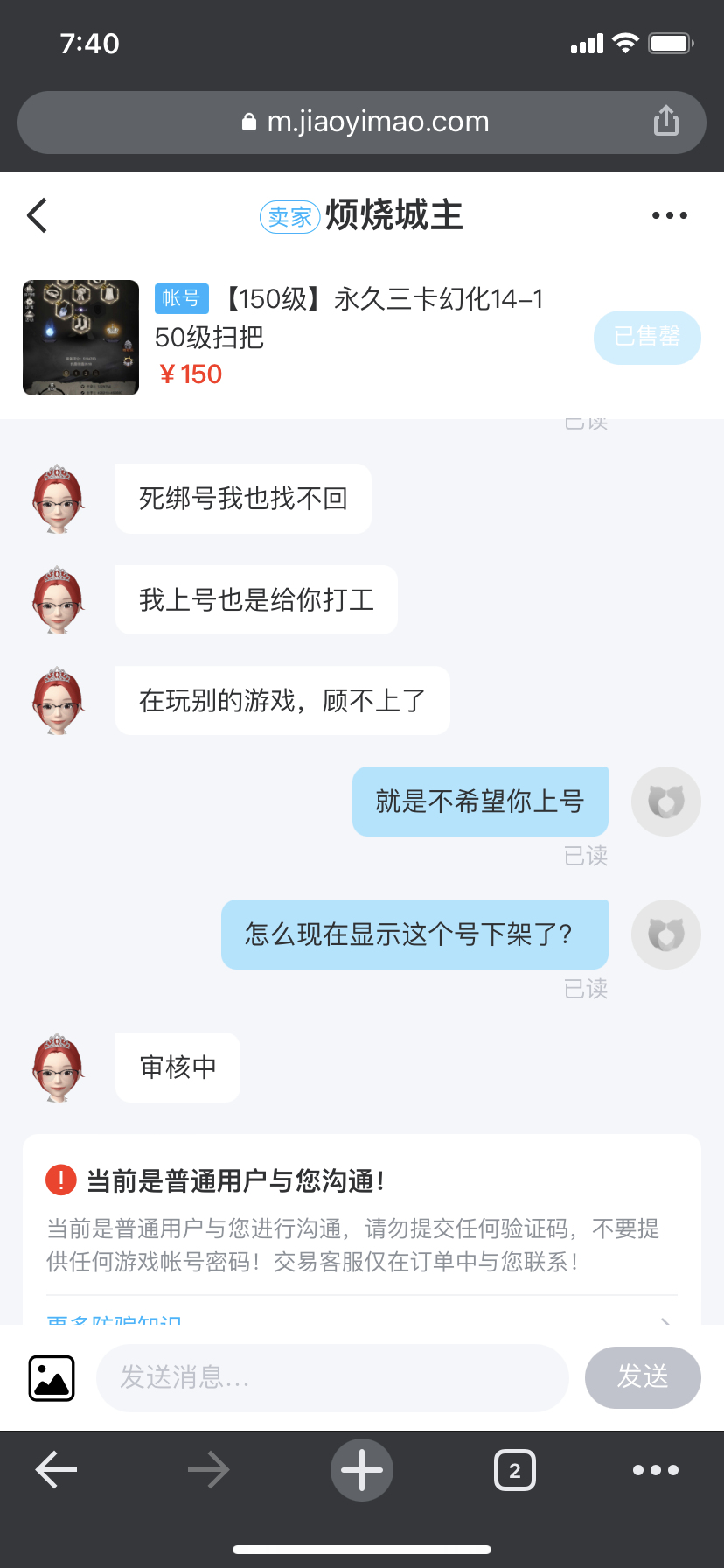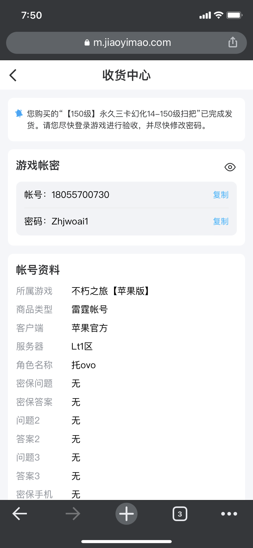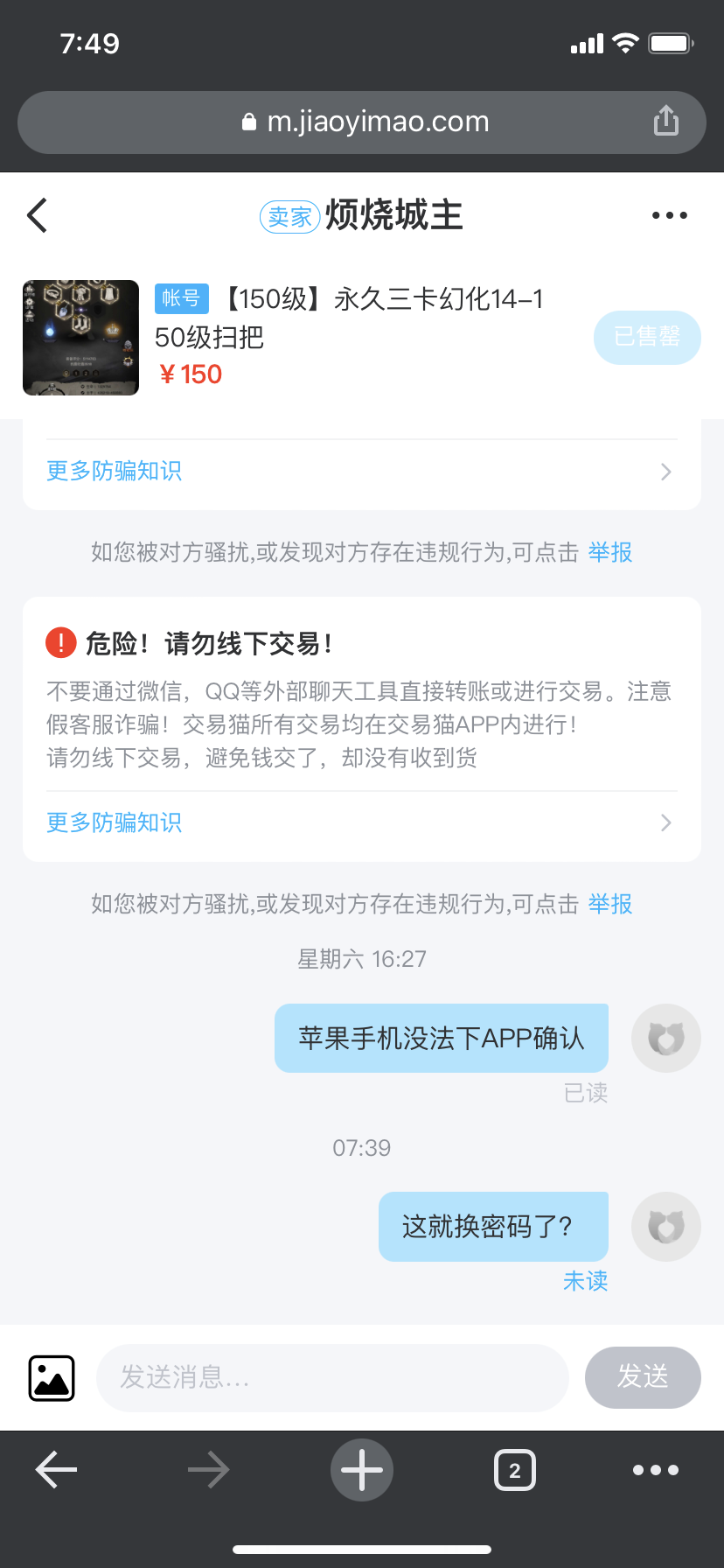 交易猫买三卡号被骗了,刚自动成交就换密码