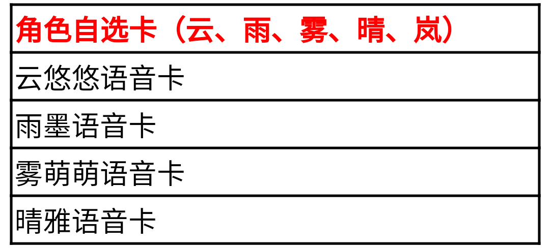 此外,奖池中还有一张HeartShot女神自选卡,获得此卡的CFer,可以从云悠悠、雨墨、雾萌萌、晴雅、岚兮儿之中任选其一。而且除了岚兮儿以外,另外四位电竞女神的语音卡也都会加入该活动的奖池。