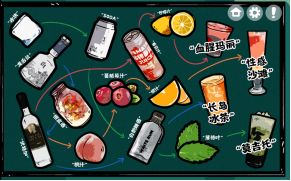 Ø 右上角的海报,可以获得调酒配方和放置的顺序,中间的酒柜上可以获得调酒需要的【橙皮酒】【白兰地】【苏打水】等