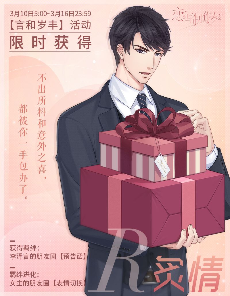 4.累计番茄数达指定档位,可领取含R羁绊【李泽言·炙情】和SR羁绊【李泽言·撷果季节】在内的多种奖励。
