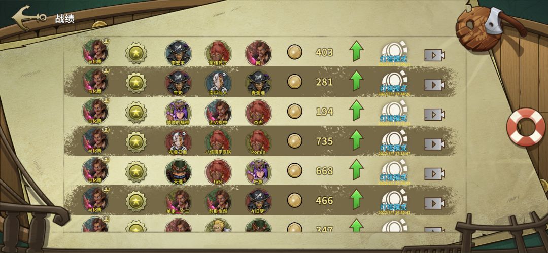 我在手游开服第一天就开始玩了,第二天打到了10000以后开始研究各种炼金卡组,我在12000积分左右全程使用真伤炼金,就是上面截图这一套,胜率大概有80%以上。参照了冒险王大佬给出的卡组,微调了技能和岛屿。