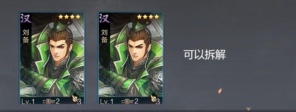 如果抽到四星武将,有朱㑺、甘宁、凌统、李儒、小乔、大乔、张绣、曹彰、郭嘉、曹仁其中之一的话,那就可以培养一下,等有多余的相同武将再分解技能。