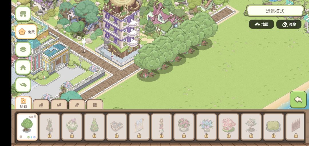 1.铺了水面收不掉了😂不知道怎么调整,摆植物还知道可以点消除或收纳,但需要长按好像不太灵敏的感觉,还有不知道哪些区域可以摆放,是不是可以设置一下格子显示,当然有些人不需要,那也可以设置隐藏格子;