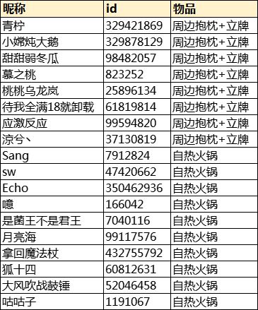 ---------中奖名单--------