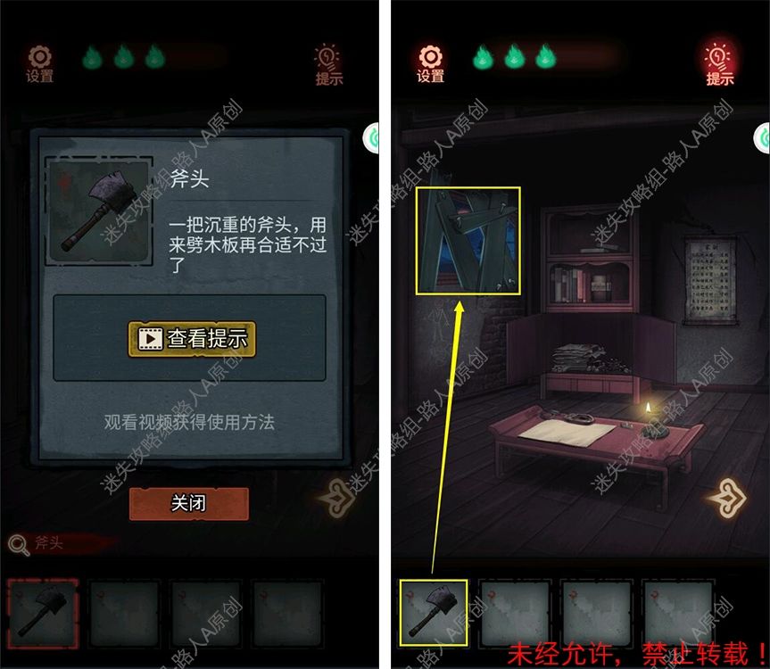 29.用【斧头】劈开窗户的木板,从窗户离开。29.1