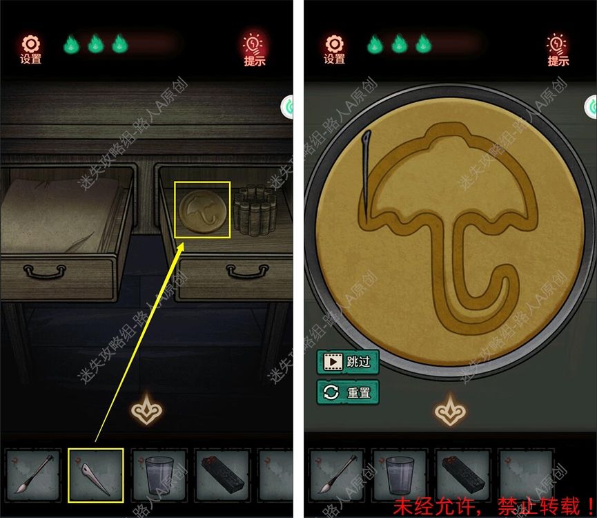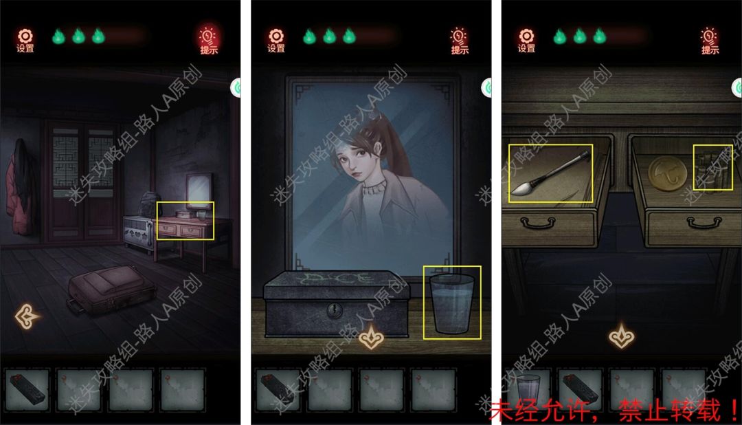 17.拾取梳妆台上的【水杯】,以及抽屉里的【毛笔】、【针】。17.1