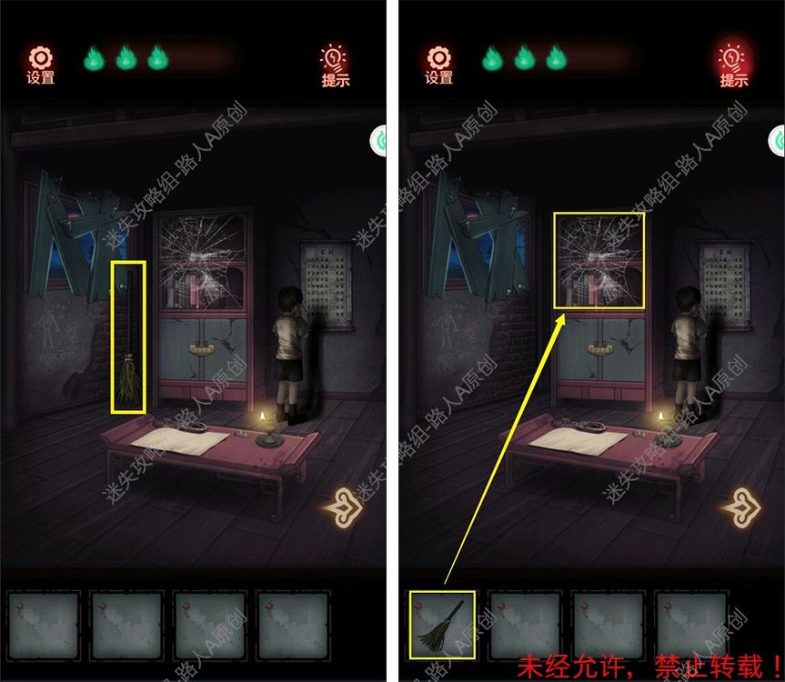 14.拾取【扫把】,用【扫把】清除蜘蛛网。14.1