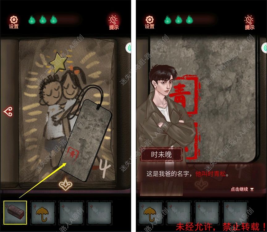 24.翻开绘本的最后一页,在书签上盖章,获得线索【时青松】。24.1