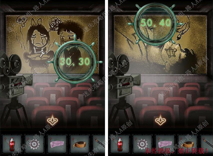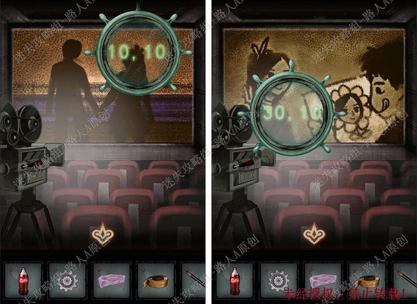 9. 点击放映机切换荧幕画面,用【透镜】找出隐藏的坐标。9.1、9.2