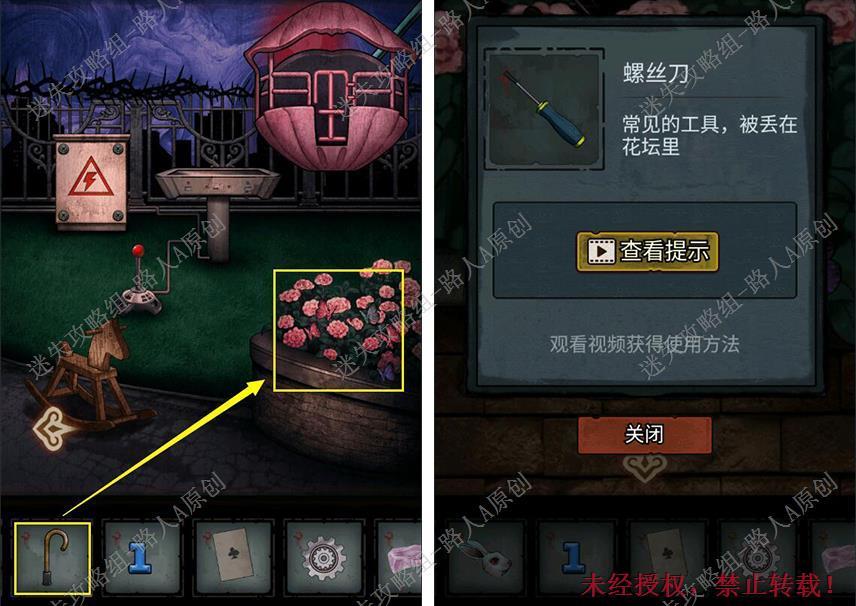 24. 用【手杖】拨开花坛的荆棘,拾取【螺丝刀】。24.1