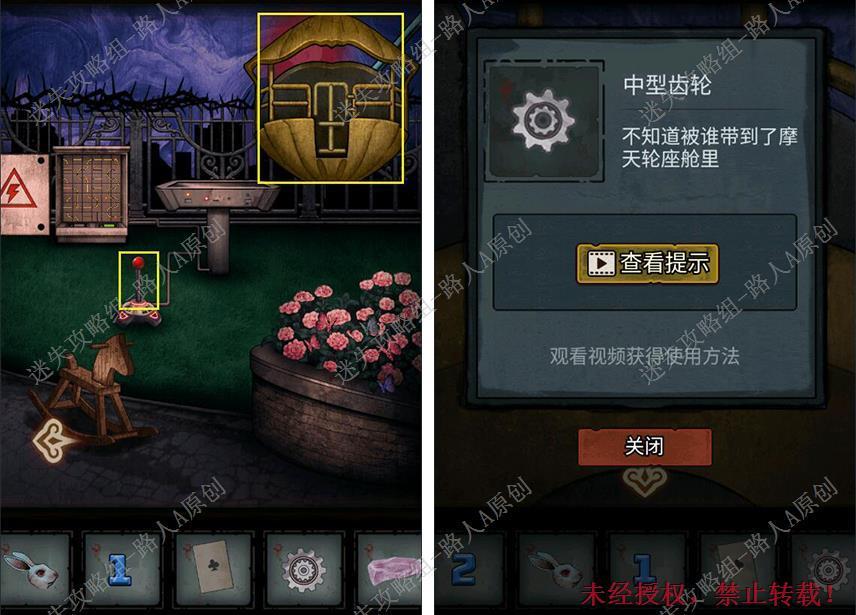 26. 拉动摇杆,进入黄色摩天轮座舱,拾取【齿轮】。26.1