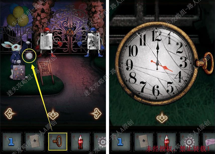 18. 将【发条】安装在钟表上,按下发条,得到线索。18.1