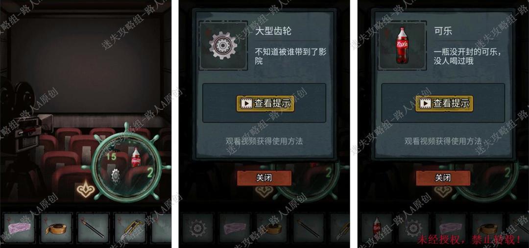 8. 用【透镜】查看座位,拾取【齿轮】和【可乐】。8.1