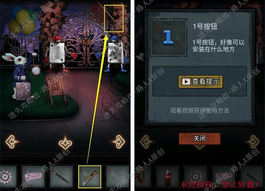 17. 用【美工刀】割断绳子,拾取掉落的【1号按钮】。17.1