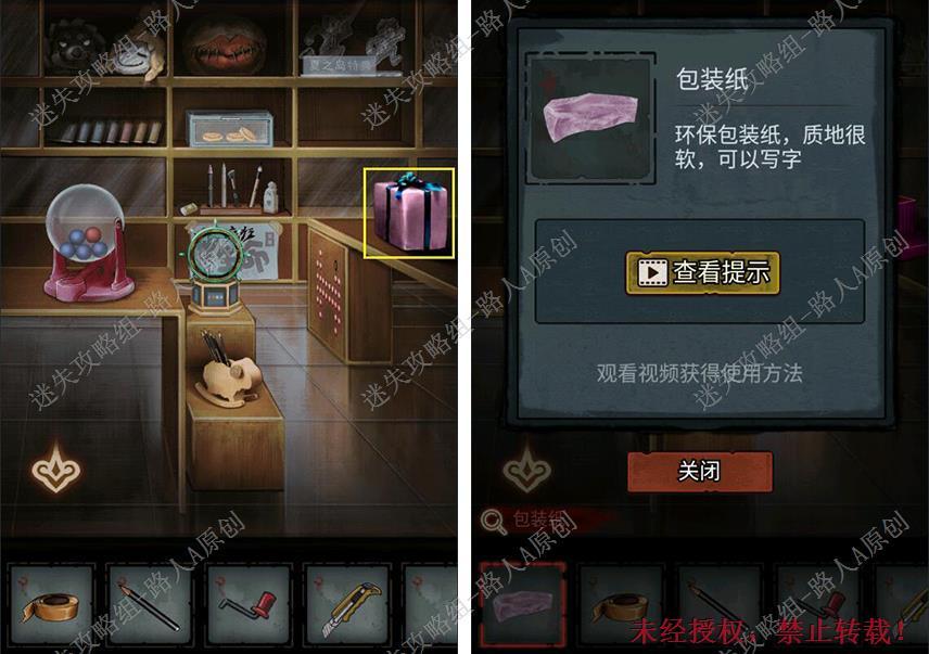 2. 拆开桌上的礼物,拾取【包装纸】。2.1