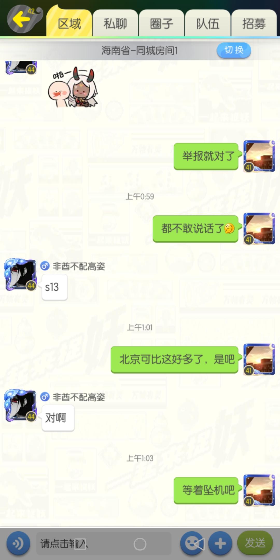 那个人位置在北京,却又在海南区域的聊天公屏。