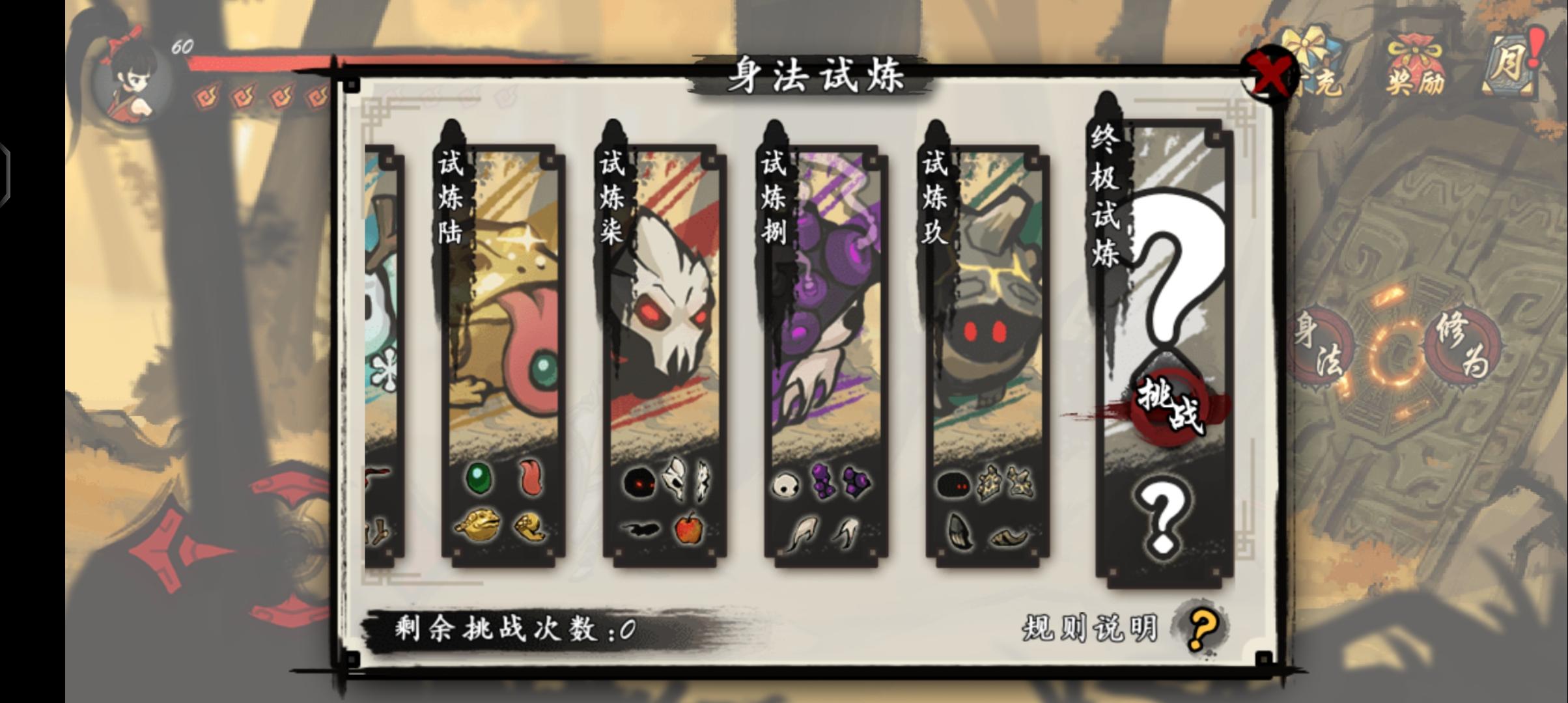 玩了两周了,零氪,过神茶身法开启后一天过一个身法挺简单的,今天身法过了身法9,关卡现在在困难最后一关,运气好在商店买了个太虚剑意不然怪皮都磨不了。