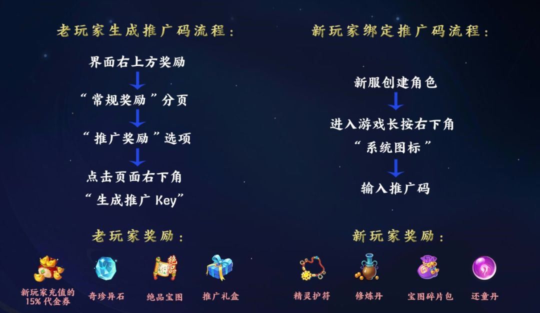 (PS:老玩家可以在发的时候附带上自己的推广码,新人绑定推广码之后双方都能获得丰富好礼)