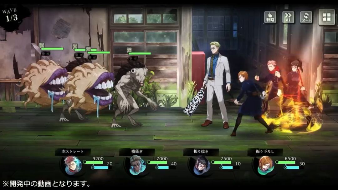 战斗动画首次公开,可以看到虎杖悠仁、七海建人的必杀技镜头,看起来是横版回合制,有加速和auto UI。