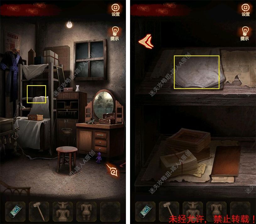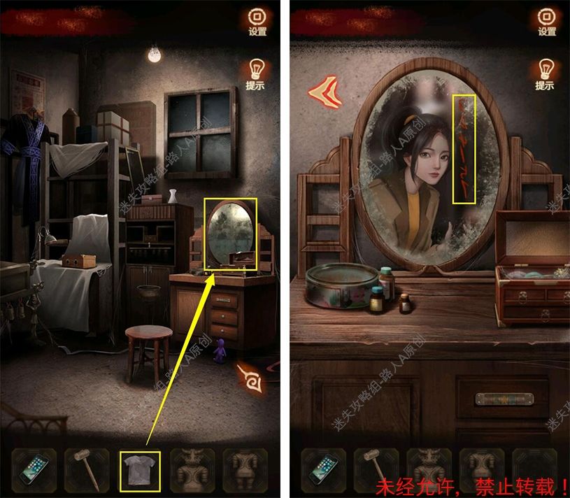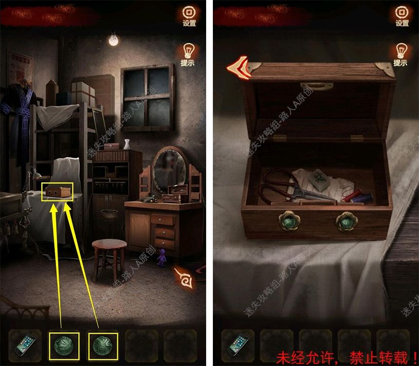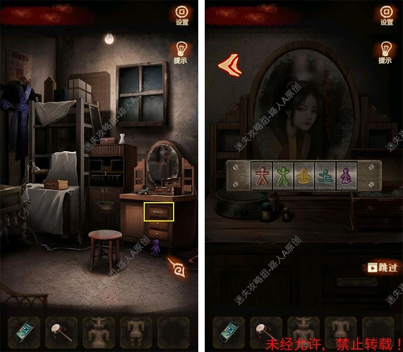26.根据4个地方的线索,打开梳妆台的抽屉,获得【小刀】。26.1、26.2