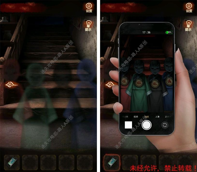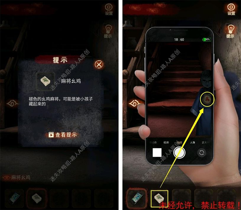 19.用手机查看楼梯前的小鬼,得到提示【食糖鼓鸟】。19.1