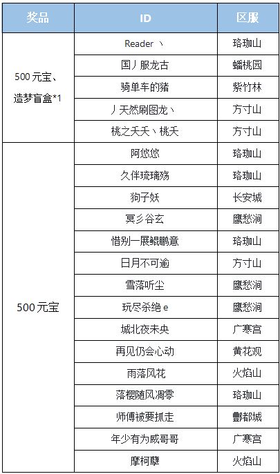 》》元宝奖励将在名单公示后的七个工作日内发放,若参与活动时提供的角色信息有误亦视为放弃奖励。