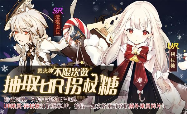 活动描述:活动期间,开启十连STEP卡池,该卡池UR飨灵-拐杖糖与SR飨灵-法棍面包等稀有飨灵限时加入并且概率UP,累计抽取一定次数即可获得额外奖励。本卡池使用灵火种不限次数抽取!