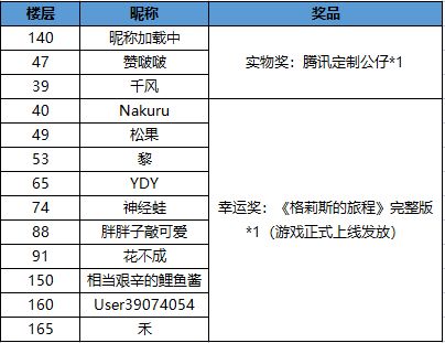 1. 活动日期截止后开奖,工作人员将在回复区有效楼层中随机抽取3位幸运玩家发放实物奖励;获得幸运奖的玩家,可进入官方群登记个人信息;