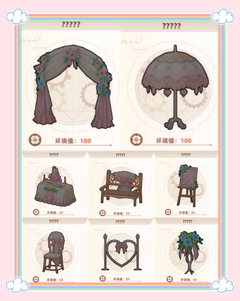 UP物品——婚礼阳伞×10,同时盲盒机中新增4款婚礼主题装饰物:婚礼长椅、婚礼栅栏、淡粉色鲜花路和深红色鲜花路