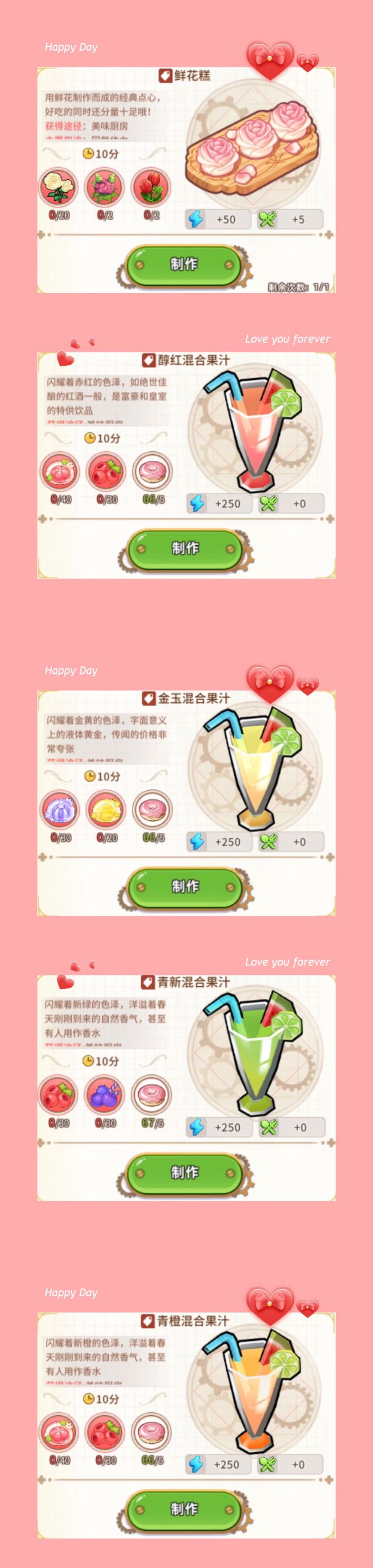 这个新果汁呢,我不太明白,五个甜甜圈就250体力了,还要70个甜品水果干什么???说明:除了吃还可以赠送给4位组队活动的NPC——艾薇、丹、卢茶或摩尔,将在一定CD时间后获得一批丰厚的对应产物。(CD时间与产物数量非固定,会在一定的范围内波动)