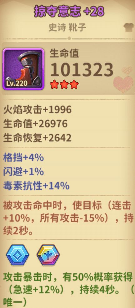 没红一星韧性低时可以带:掠夺者意志(史诗红装,防暴毙的)