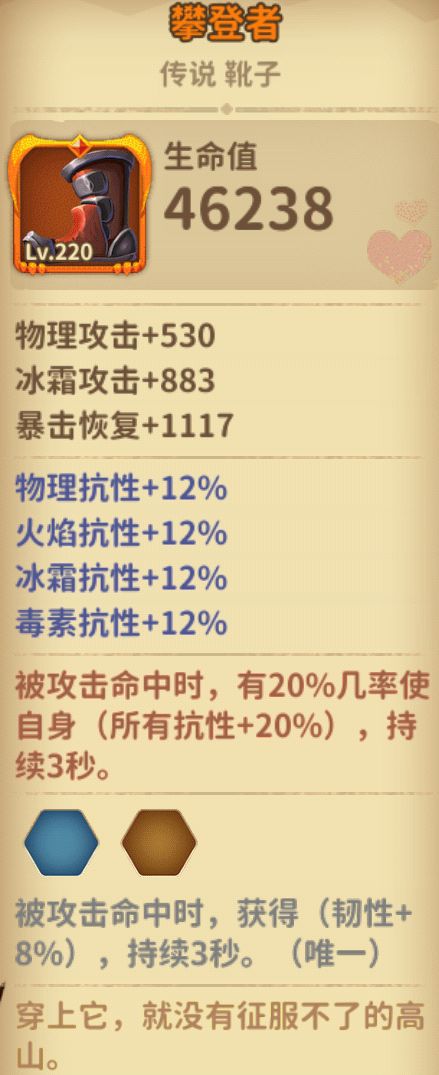 我们如果太脆会出现什么情况呢?两次一下破盾加掉血,第三次出现技能或者暴击就要掉非常多血,续航跟不上导致佣兵死亡,而有了这20%的抗性换算一下的话和这个韧性8搭配起来,生存会大幅度提升很有必要的两条属性(对换算公式有兴趣的家人可以看前面几篇有提的),这个效果也和忘了爱、掠夺者、攀登者也很搭。