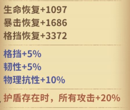 获得护盾类:加攻击10%、持续3秒、对目标造成伤害45%、
