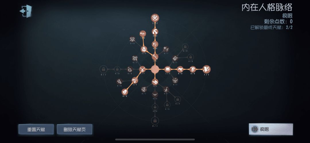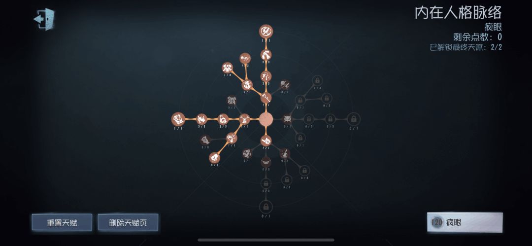 本套天赋在携带【闪现】的情况下可以帮助疯眼在前期更快的建立优势,但由于未携带【挽留】和【底牌】,因此如果前期没有快速击倒求生者,后期会非常乏力。