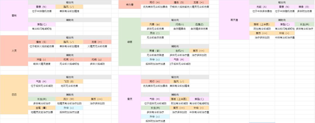 2,说下符文的事,符文看起来很杂,但相比于前一个版本,真的是简化的N倍,这里贴一个符文属性图,输出找输出的位置,奶找奶的位置,通用的很少,限定的很多。