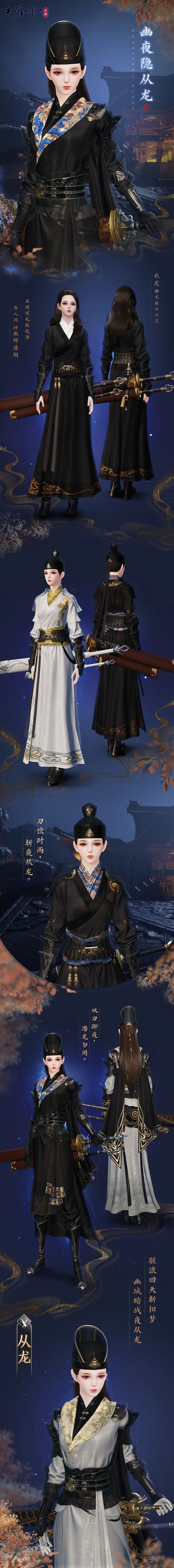 刀妹听到有少侠问,到底什么时候可以穿上这些帅气衣服成为一名从龙卫呢?当然是3月17日刀刀手游开年资料片——《幽夜隐从龙》,从龙卫现身江湖,等少侠前来大显身手!