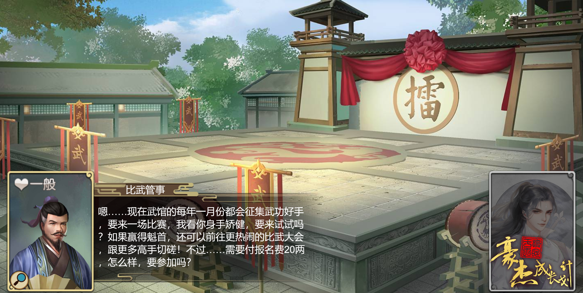 据比武管事所说,每年一月份都会有比赛,似乎从武馆脱颖而出的侠士还能够进一步,参加城市比武大会,甚至是地区英雄大会!