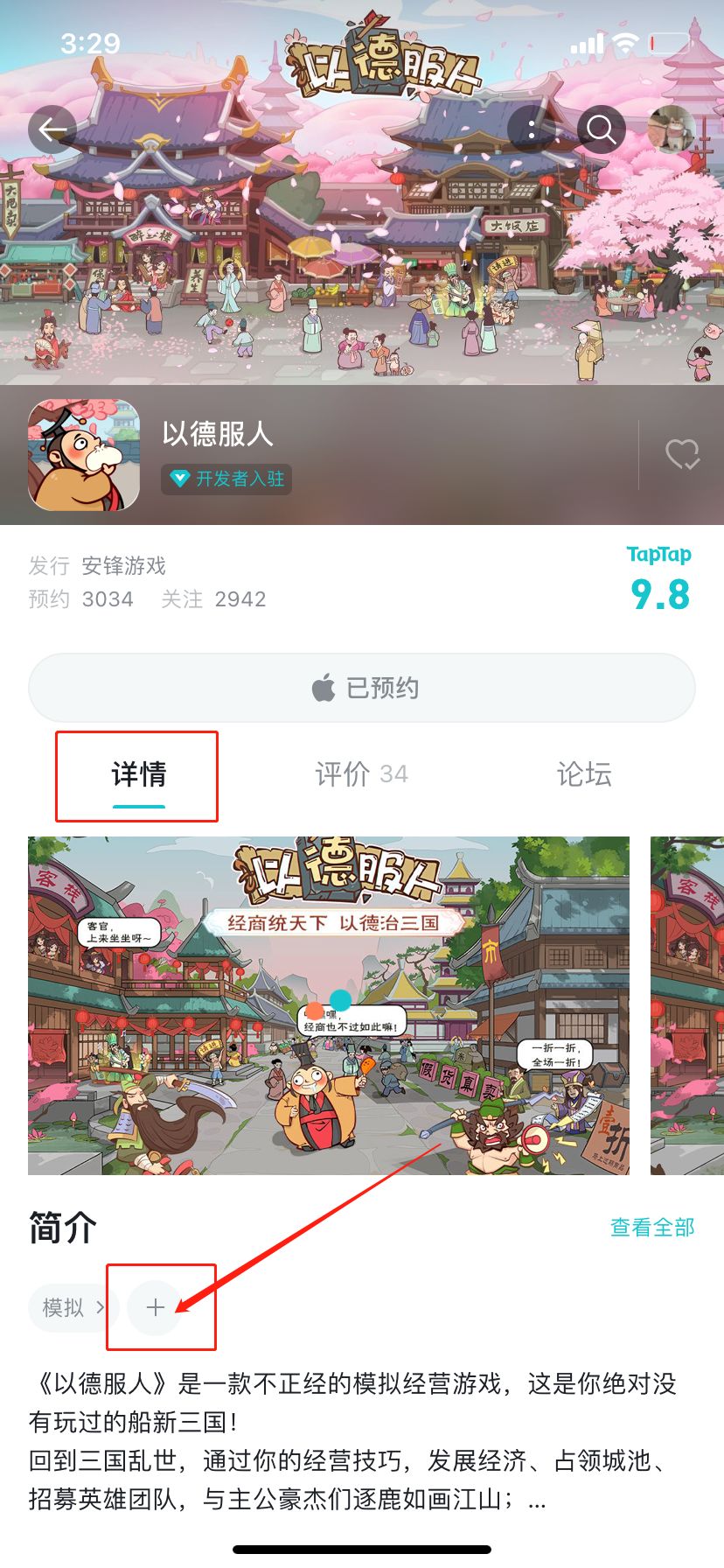 ①为《以德服人》TAP社区添加标签,如:经营、模拟经营、休闲、三国、放置等,都可以哦~