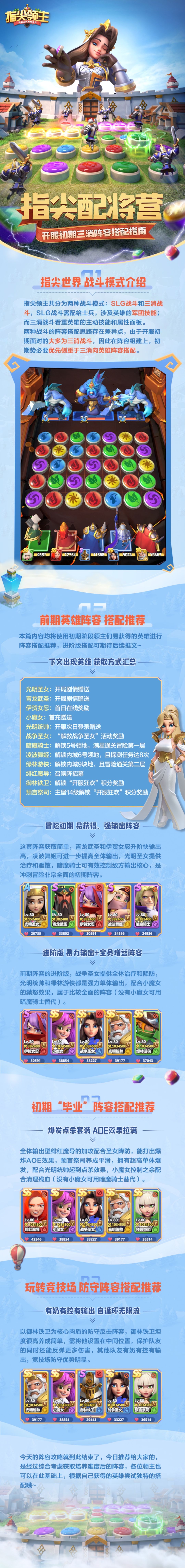 指尖配将营|初期三消英雄阵容搭配指南