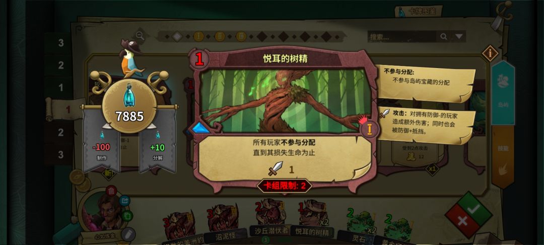 优点是适配性强,没有特别怕的角色和卡组,万金油啥情况都能玩,而且有完美量身定做红岛——悦耳的树精!这卡对我们就是专属绿岛加恶心队友!(有心如会加钱的)