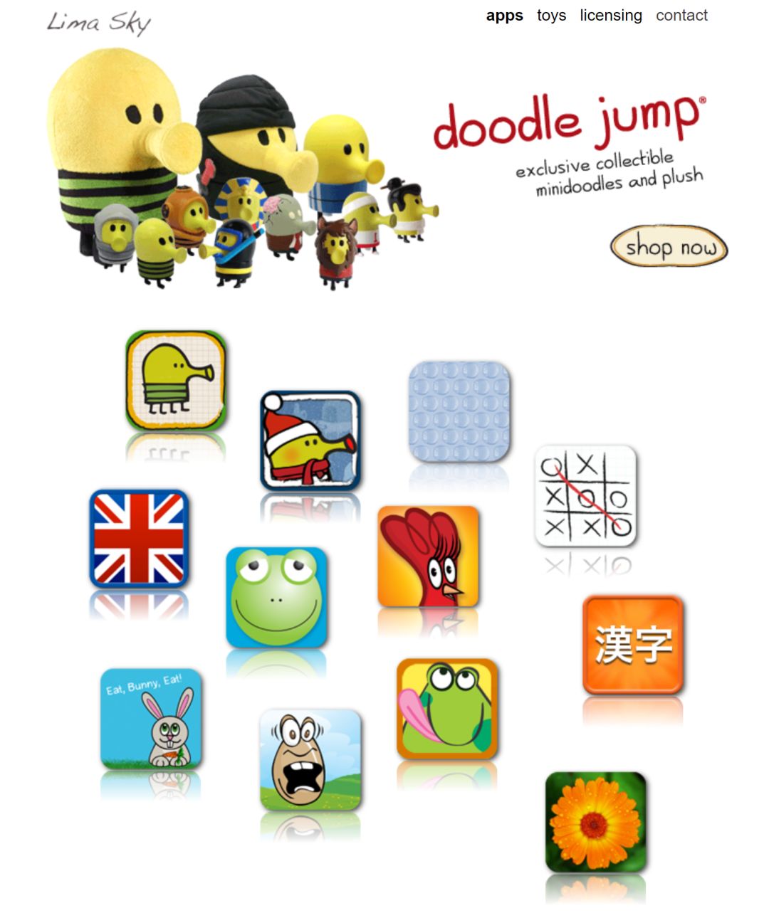制作《涂鸦跳跃》的公司叫做Lima Sky,创始人Igor Pusenjak和他的兄弟Marko是这家公司唯二的员工。当时App Store刚刚上线,敏锐嗅到商机的两兄弟就开始为iOS开发游戏。由于公司只有两个人,开发经验也不多,两兄弟只能做一些“按气泡膜”“井字棋”之类的小游戏。但是在他们刚开始做这些游戏的时候,整个App Store里也只有500个应用,你甚至花十几分钟的时间就可以看完所有iOS平台的应用。所以当时两兄弟做的简陋的小游戏销量还不错,这给了他们很大的信心,接连做了几十款小游戏。