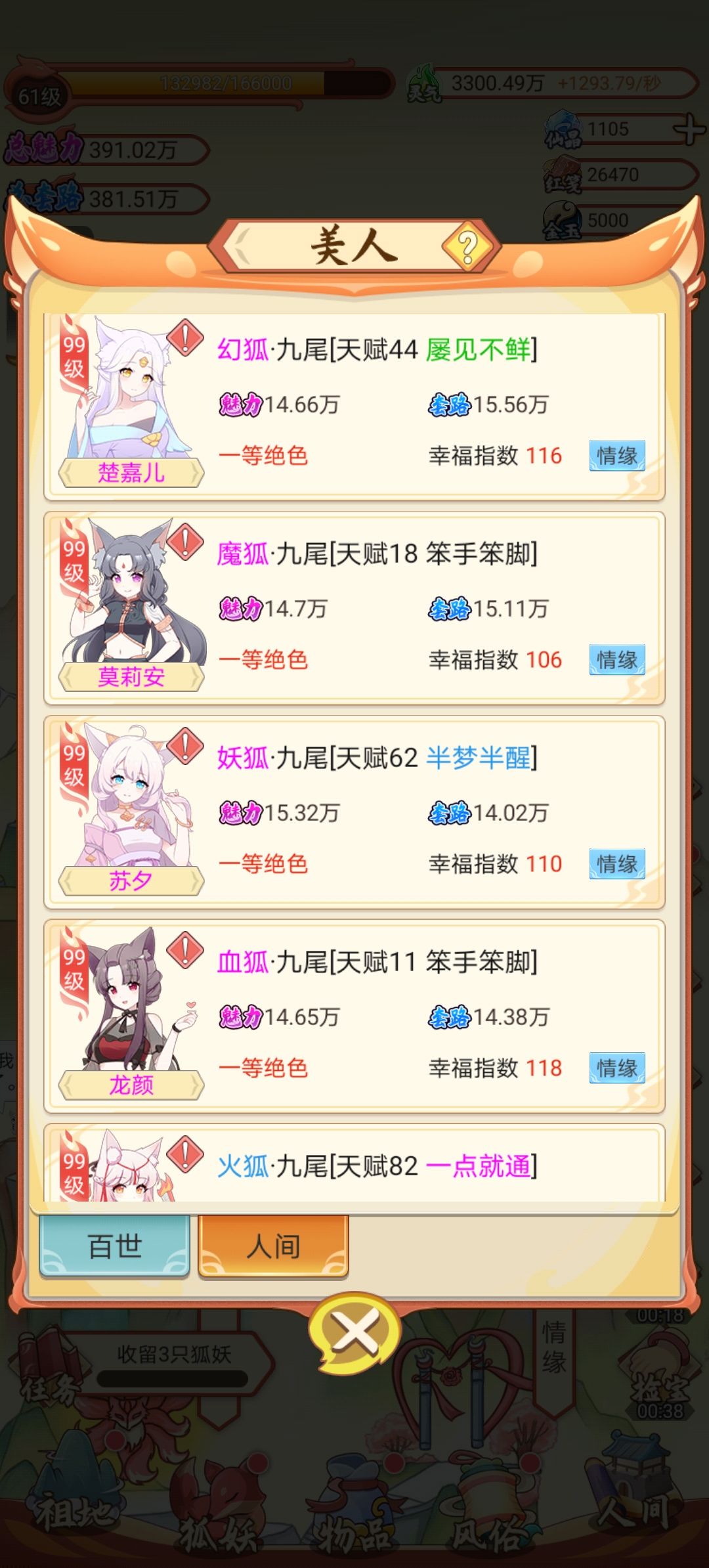 唉,就不能给升级点个一键按钮吗?狐妖2也没动静了。工作室还好吗?是不是遇到了问题?在的话求求你了,给升等级的弄一个一键按钮吧,鬼知道我点了多少99次。