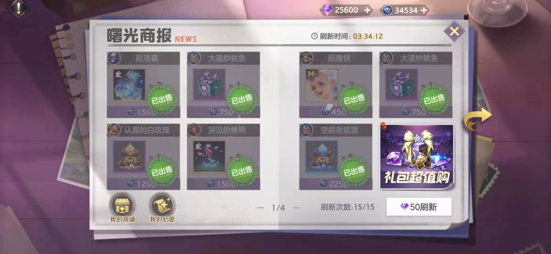 而上图,就是商报中的心愿系统,说得简单一点,就是筛选,当你在加号中点选了自己最想要的物品以后,那么会在商报货架的主页面,优先显示你需要的物品有没有货了,是不是很方便呢?利用好这个商报系统,玩家可以获得过去遗漏的联赛赛季英雄,还有一些非常好看的局内特效!主要的是,他可以让你把没用的东西换取联赛币,联赛币其实非常重要的,因为打任何联赛,都需要联赛币的报名,也只有打了联赛,才能获取联赛经验升级等阶这样结算的时候才能给予你相应的龙晶卡!!!有了龙晶卡,不就可以白嫖西王母了么??好,言归正传!